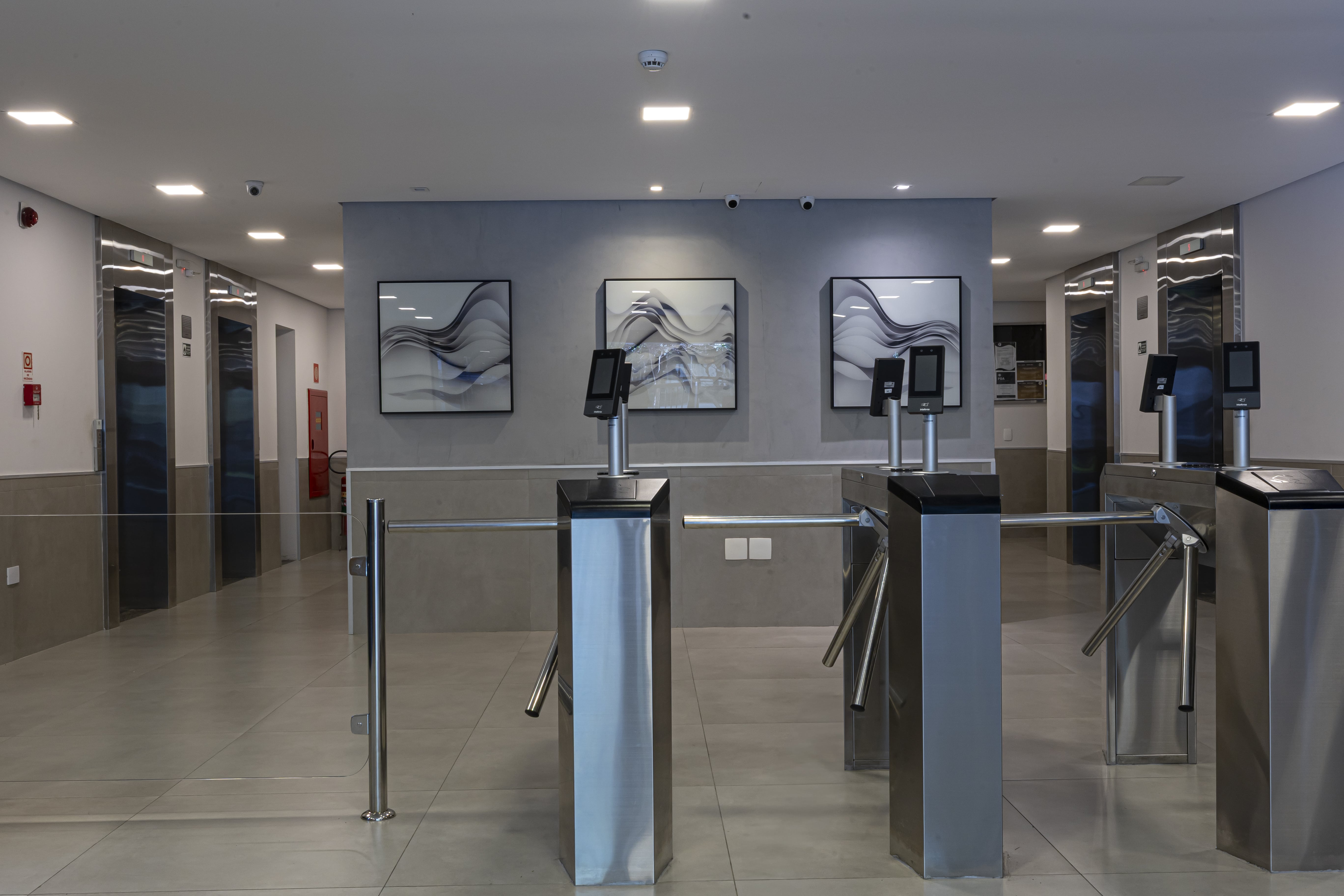 As soluções incluíram a instalação de catracas e a modificação do layout do hall, eliminando filas e proporcionando mais fluidez, conforto e eficiência no acesso ao prédio.
